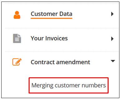 Go to the menu item Change Contract and click on Merge Customer Numbers.
