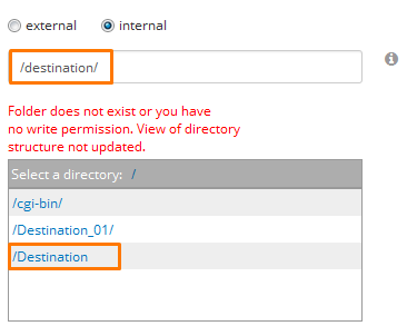 Note: The existing directories from your web storage space are displayed to you below the input line. Here, you can directly select the desired directory.