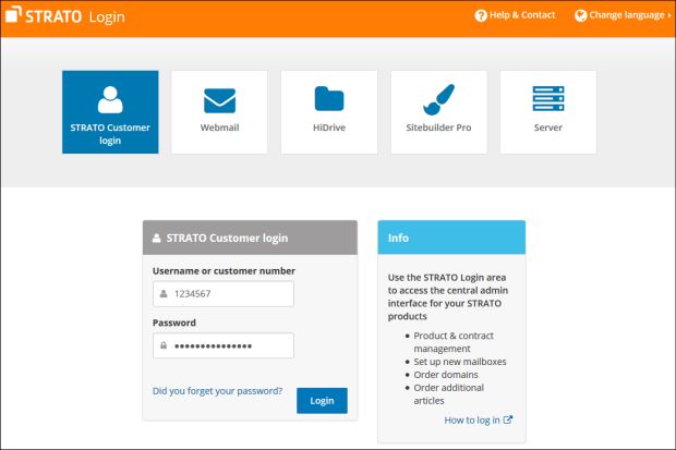Your customer number is also displayed after login in the STRATO Customer Service Area in the customer support under the menu optiont Your Customer Data. Here, you will also have the option of changing your master data.