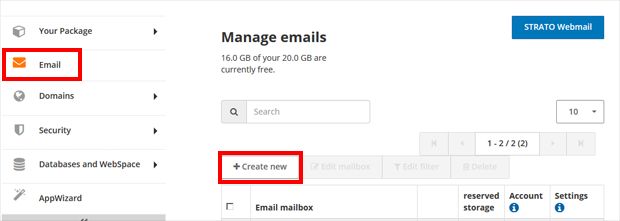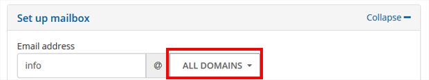 You can also set up your email mailboxes in the customer area. You can find the email administration under Email / Email Administration. You can create the mailboxes by using YourMailbox@ALL DOMAINS.