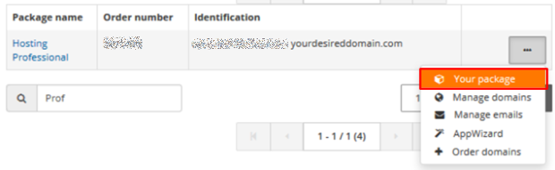 After this, select the package for which you would like statistical data collected. To do this, click in the right-hand section on the order number of the package or on the Your Package button.