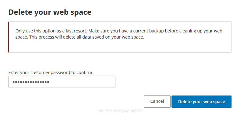 Enter your login password to confirm that you wish to proceed, and then click on “Web space cleanup”.