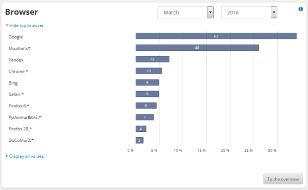 Via the browser line, you will see a diagram of the most frequently used browser by clicking on the option.