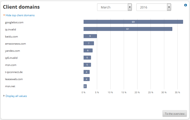 Via the Client Domain row, you will see a diagram of the domains that accessed your internet presence the most often