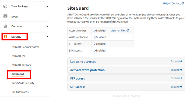 Furthermore, there is also the option of providing your web space or individual directories contained within it with write protection. If this is enabled, the affected areas can no longer be written to via scripts. Write access is still possible via FTP or SSH. The FTP and SSH services can also be separately disabled with STRATO SiteGuard.