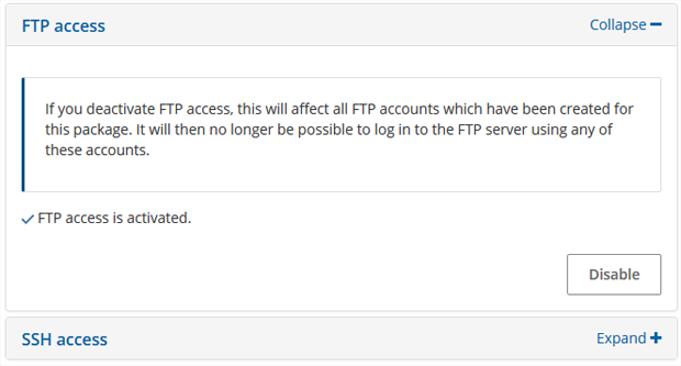 If you would like to disable all access to file operations, you also have the option of turning off FTP and SSH services (if available in your STRATO package) under write protection activation.