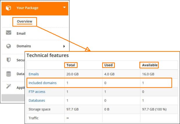 Please remember that additional domains may be subject to a fee if the included data volume is exceeded or if the desired top level domain cannot be ordered free of charge. How many domains are included in your package free of charge can be found in the Package Overview under Technical Features.