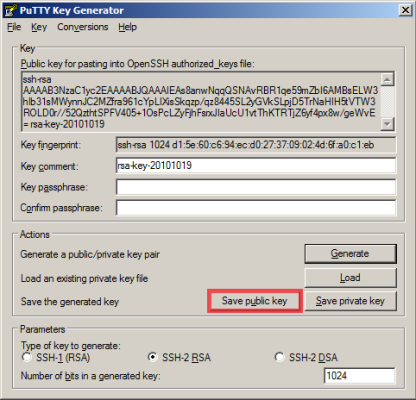 In order to create a key, select the key type (normally SSH2, RSA or DSA), enter the key length in bits and then click on the Generate button.