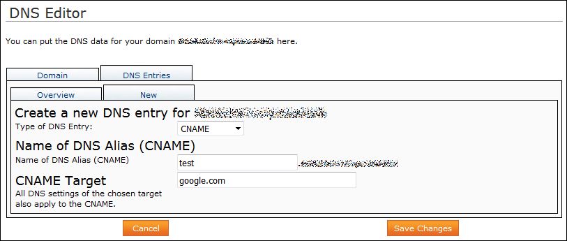 The DNS editor can be used as well to create CNAME records for subdomains.