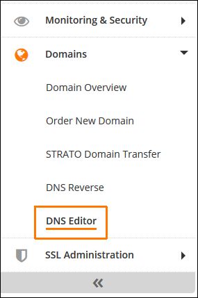 The STRATO DNS editor is a simple and convenient way for you to change the DNS configuration of your server domains in the STRATO Server Login. You can also use the DNS editor to create subdomains on your server and to change their DNS configuration.