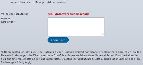 .htaccess file can be entered in the text field. You can find more information about .htaccess files under http://wiki.selfhtml.org/wiki/Htaccess
