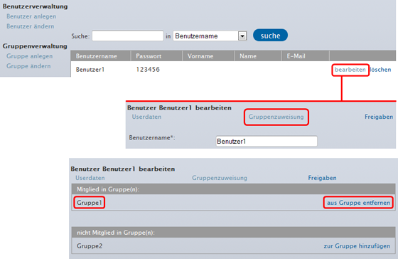 Of course, you can also assign this user to a group via the menu item Change user / Edit and then under Group assignment.